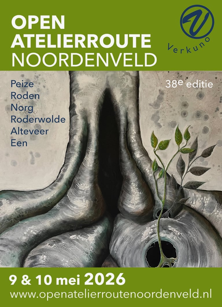 Voor de 37ste keer presenteren wij u met trots de Open Atelierroute Noordenveld. Deze route is georganiseerd door leden van Verkuno, de vereniging voor professionele beeldende kunstenaars en vormgevers in Noordenveld. Dit jaar hebben we 20 locaties (zowel ateliers als 4 mooie kerken en een aantal bijzondere groepslocaties) en zo'n 40 deelnemende kunstenaars.
