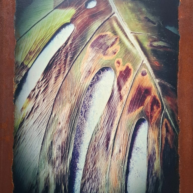 Agnes Westerduin toont sfeervolle fotobeelden in close-up op roestend staal. Dit concept verbeeldt tijdelijkheid, verval. Een verrassende techniek die de nieuwsgierigheid prikkelt.