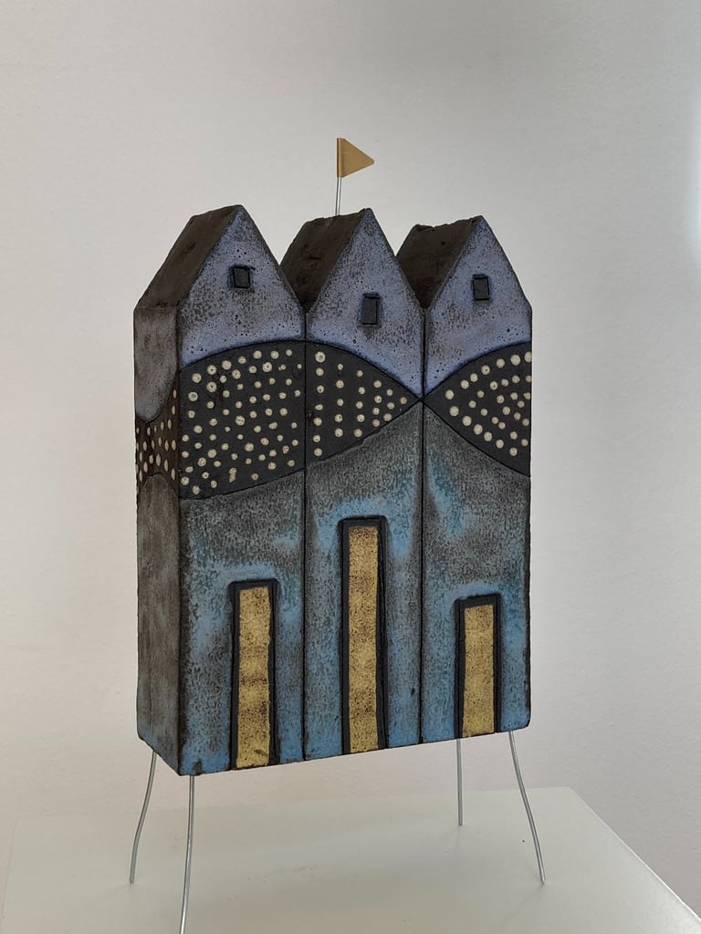 Van klei maakt Froukje Dijkstra impressies van huizen en gebouwen, soms met een knipoog naar de werkelijkheid. Een van te voren bedacht plan ligt ten grondslag aan het maakproces. De architectuur die zo ontstaat is niet gebonden aan een speciale plek of periode. Het zijn haar impressies, ze staan stil in de tijd, maar dragen ook sporen van tijd in zich, ze zijn tijdloos.