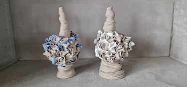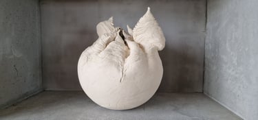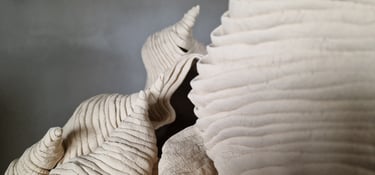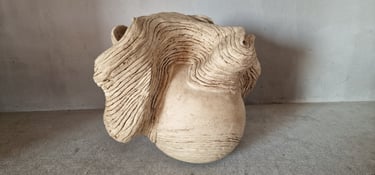 Het blijft voor mij boeiend 'in gesprek te gaan' met de klei tijdens het opbouwen. Want klei heeft een eigen wil en kan heel dwingend zijn. Samen bepalen we de vorm. Hoe dat eruit ziet, toon ik graag tijdens deze atelierroute.