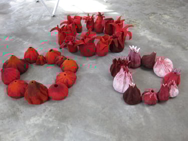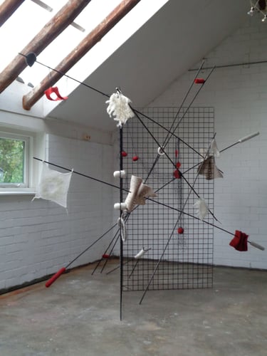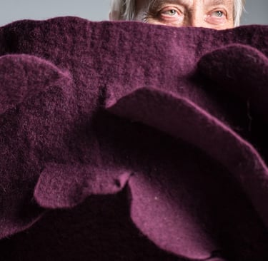 Het viltproces en het experimenteren daarmee boeit Magda, dat is de grootste uitdaging. Terwijl zij bezig is met het vilten en ziet hoe het er uit ziet, wordt duidelijk wat er nog meer nodig is. Dan ziet ze welke materialen er nodig zijn om het werk zijn uiteindelijke vorm en kleur te geven.