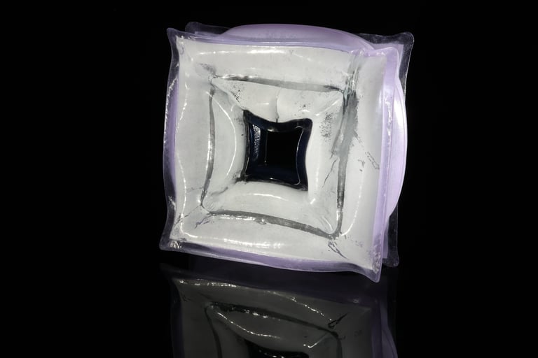 Linda van Huffelen maakt glasobjecten in ongebruikelijke technieken. Zij speelt met glas, licht en lucht om driedimensionale glazen dromen tot leven te brengen. Het werk van Linda bevindt zich vaak op het raakvlak van teerheid en kracht, zoals ook glas beide kanten in zich heeft. Inspiratie vindt zij in de natuur: nog een plek waar kracht en fragiliteit elkaar vinden. Daarbij is zij speciaal geïntrigeerd door ritmes in vormen, zoals Fibonacci reeksen en regelmatige delingen.