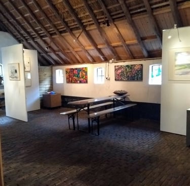 Tijdens de Open Atelierroute Noordenveld kunt u in de Paardestal in Peize een overzicht zien van alle deelnemende kunstenaars als voorproefje van de atelierroute.
