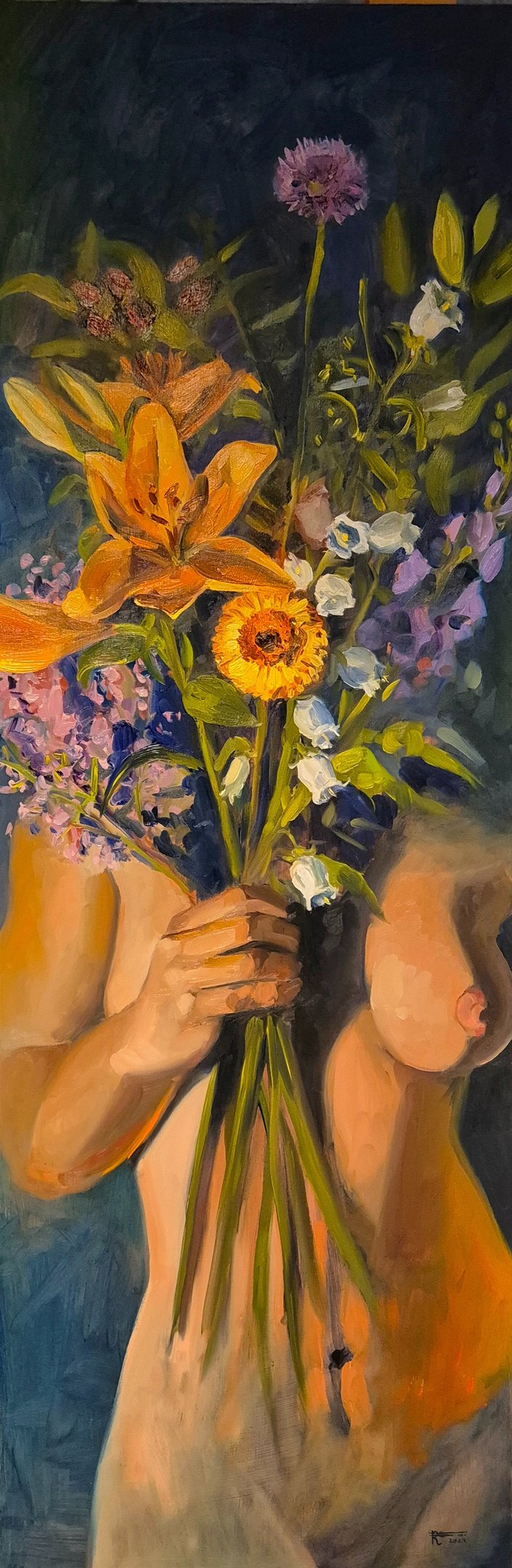Daarnaast zijn er schilderijen te zien van (Drentse) natuur en bloemen; onderwerpen die mij fascineren door hun altijd veranderende karakter en kracht. Mijn composities zijn in de eerste plaats samengesteld op basis van licht en donker. Binnen deze tonale composities voeg ik kleuren toe die het totaalbeeld versterken.