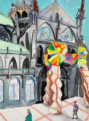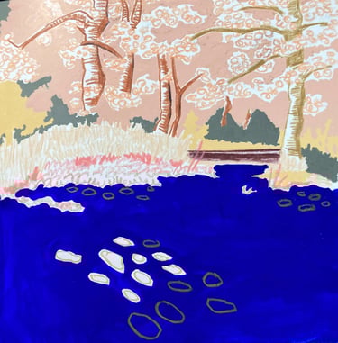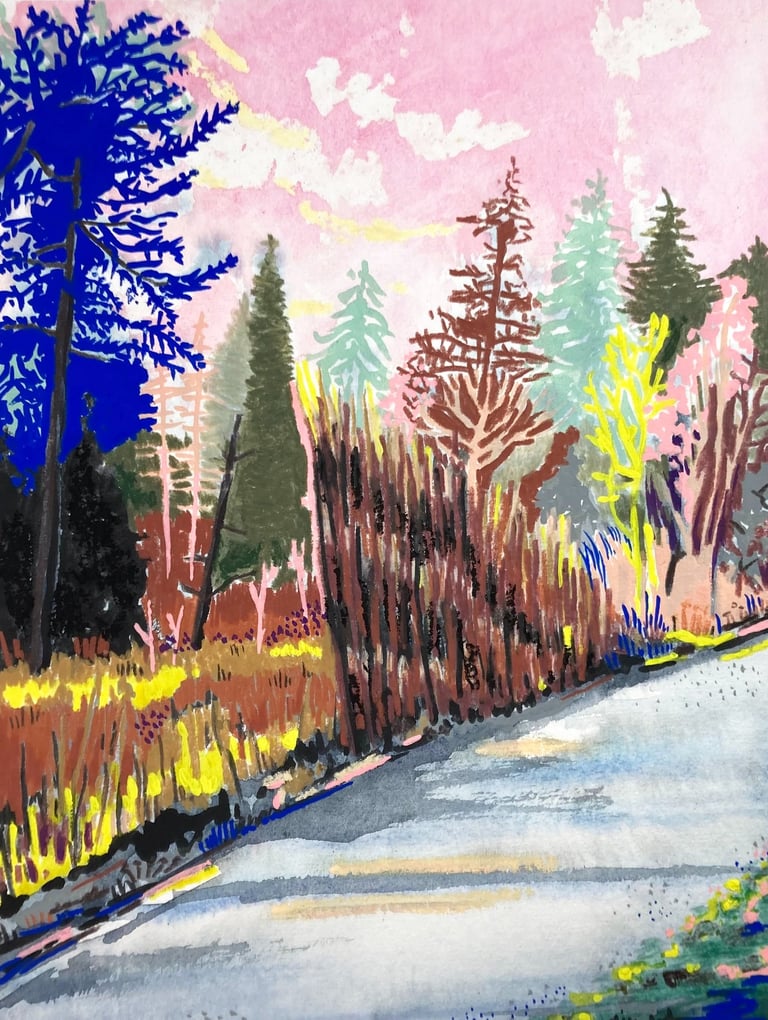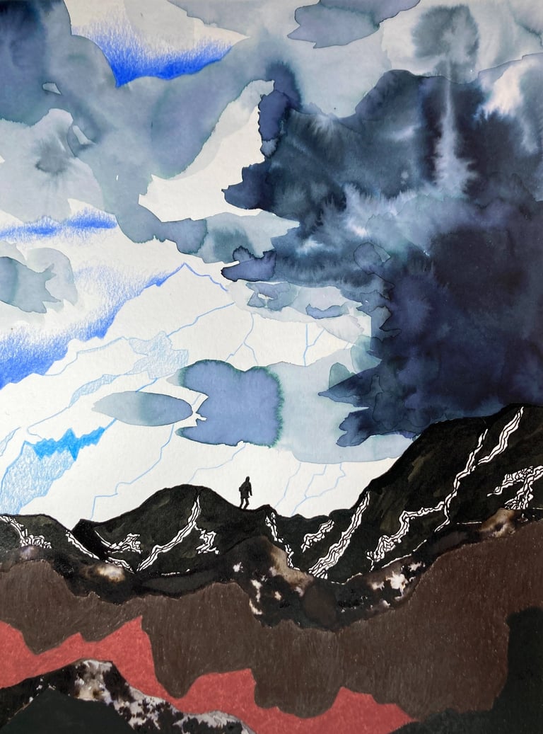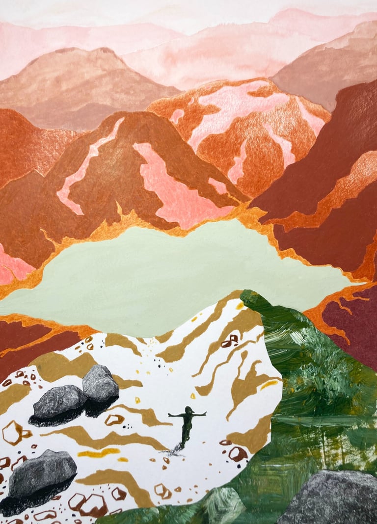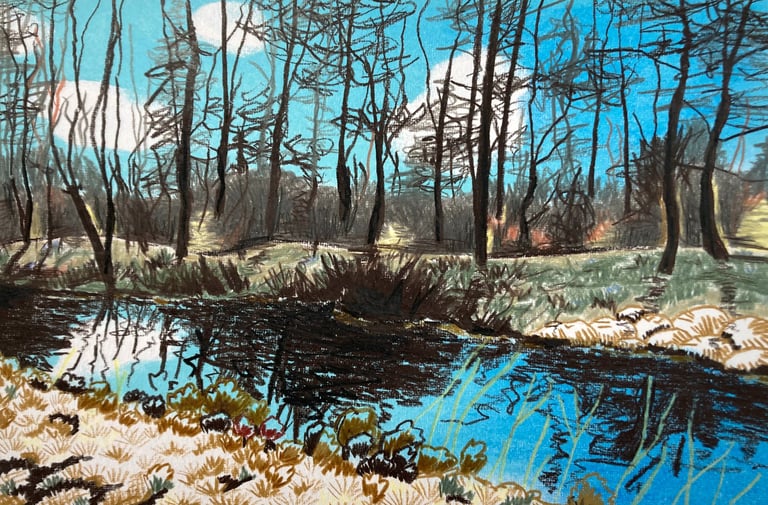Inspiratie vind ik onder andere door in de natuur te zijn. Ik hou van de Drentse velden met heide en kronkelige bomen, van rotsige bergen en van de schijnbaar eindeloze duinen op de waddeneilanden. In m'n atelier ga ik dan aan de hand van foto's hiervan aan de slag met een landschap, want daar heb ik al mijn soorten verf, inkt, kleurpotloden en collagepapier voor handen en kan ik steeds dat pakken wat ik op dat moment het liefste gebruik. Ook mensen inspireren me. Ik vind het heerlijk mensen te tekenen met rariteiten, met karakter. Ik probeer dat te vangen wat ik het meest kenmerkend vind, zonder al te precies en realistisch te willen tekenen. Mijn werk is kleurrijk, gemaakt met verschillende materialen en technieken en is altijd op papier.
