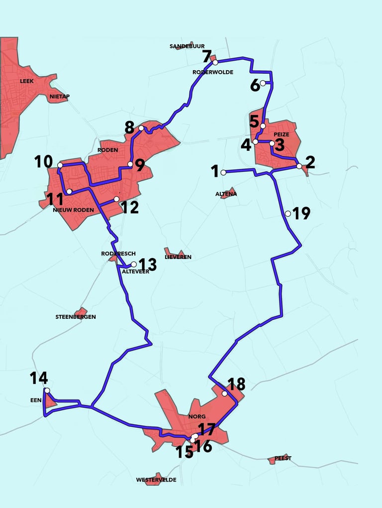 De route is een fietsroute. Wilt u de route met de auto rijden? Als u op de pagina van de deelnemende kunstenaar, die u wilt bezoeken, op de routekaart klikt, krijgt u een actuele route via Google Maps. Zo kunt u makkelijk naar elk adres genavigeerd worden.